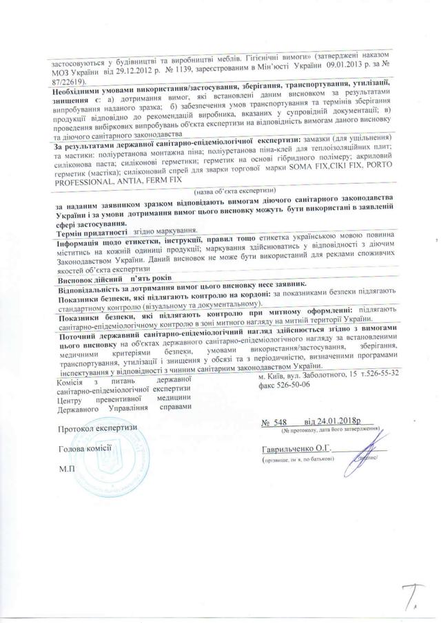 Відмінна адгезія до непористих матеріалів, таких як: метал, скло, емаль, керамічна плитка і хороша гідроізоляція зробила силіконовий герметик Soma Fix універсальним в застосуванні продуктом.